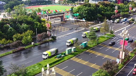 盈峰環(huán)境以專業(yè)力量,構(gòu)建起一套科學(xué)、高效的無塵作業(yè)體系。項(xiàng)目配備2臺(tái)霧炮車及多臺(tái)高壓灑水車,每日對(duì)主次干道執(zhí)行“2洗掃+2沖洗+4灑水”的標(biāo)準(zhǔn)化降塵作業(yè),重點(diǎn)區(qū)域更實(shí)施加密作業(yè),從源頭抑制揚(yáng)塵產(chǎn)生,讓市民每一次呼吸,都成為一種享受。