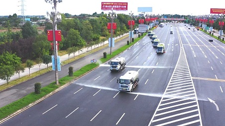 清晨的仁壽大道上,霧炮車噴灑的氤氳水霧,映現(xiàn)出一道清新彩虹;天府大道上,機(jī)械化作業(yè)編隊(duì)有序推進(jìn),留下潔凈路面與和諧的城市韻律;水體公園中,靈活的小型設(shè)備穿梭于碧水藍(lán)天之間,守護(hù)著城市的詩意棲居,一幅"城在林中、路在綠中、人在景中"的生態(tài)畫卷正徐徐展開。在盈峰環(huán)境的專業(yè)服務(wù)下,大美仁壽,這座千年古城正煥發(fā)時(shí)代新韻。